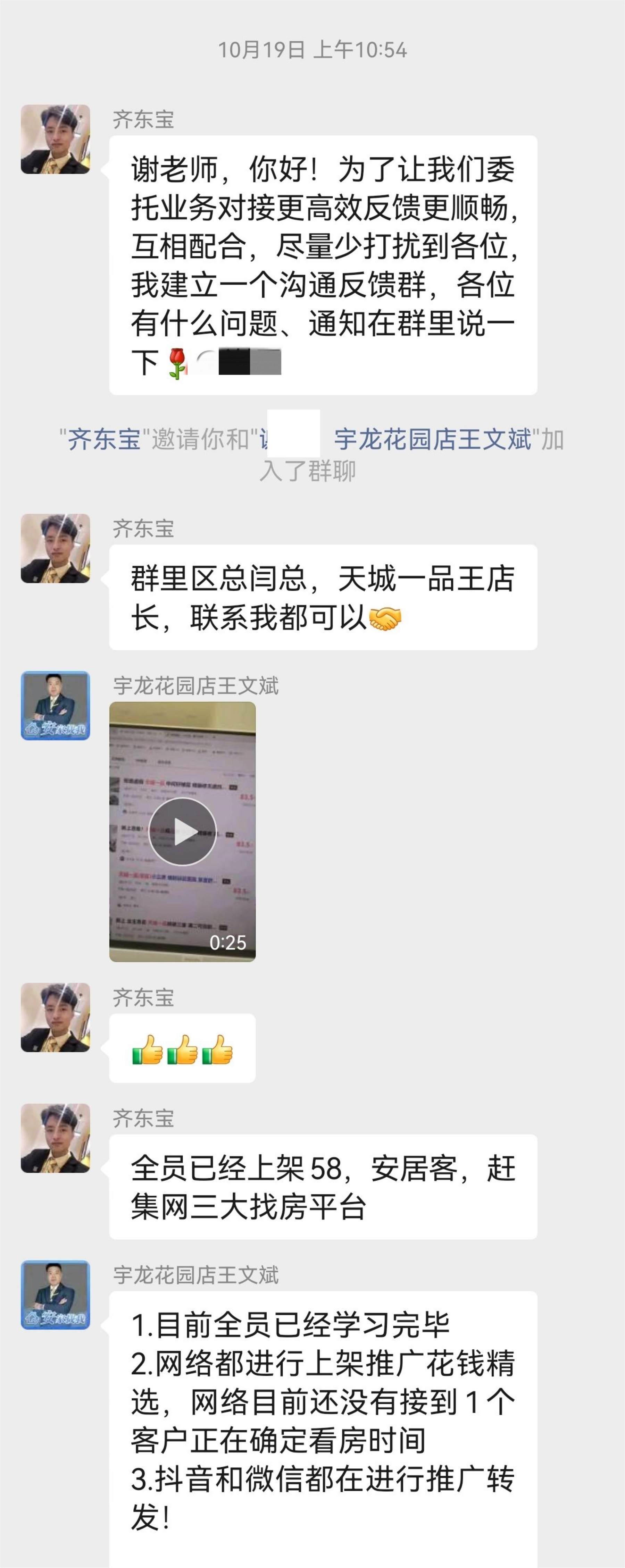 為了讓謝老師能夠,實時掌握最新的動態(tài),我們成立了專項反饋小組,微信群每天實時更新推廣效果、邀約、帶看、面談等進(jìn)度。